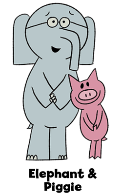 Elephant & Piggie is a book series for early readers created by Mo Willems. The series, which began in 2007 with two books, features two anthropomorphic animal friends, a male elephant named Gerald, and a female pig named Piggie. The books are written in a conversational style, with Piggie's words appearing in pink letter bubbles and Gerald's appearing in grey letter bubbles.